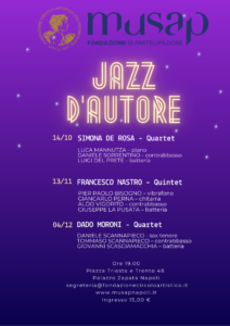Torna la grande musica al MUSAP – Museo Artistico Politecnico di Napoli con una rassegna esclusiva dedicata al miglior jazz italiano contemporaneo.